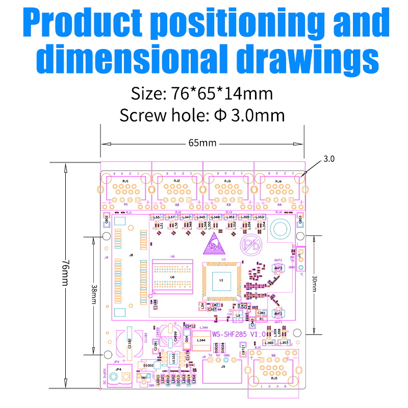 The integrated 2T2R 802.11n Wi-Fi radio and 580MHz MIPS 24KEc CPU consumes 18% less power than other chipsets on the market and delivers outstanding wireless communication performance and throughput, allowing consumers to easily control their home network, online appliances, and cloud services from home or far away. It can be used for message interception, small in-vehicle WIFI, image-video return, courier lockers, charging piles, vending machines, remote control for industrial automation, integration of other Internet-enabled devices, and corporate-grade backup network applications. The main features of this motherboard are: wide power supply range, low power consumption, modular design, and multi-function board. Customers can choose different configurations according to their actual situation, saving their development cost and development cycle. In addition, we also provide secondary development software and hardware technical support, as well as a variety of customization and other full-service, convenient for customers to quickly do the integration, professional application promotion.